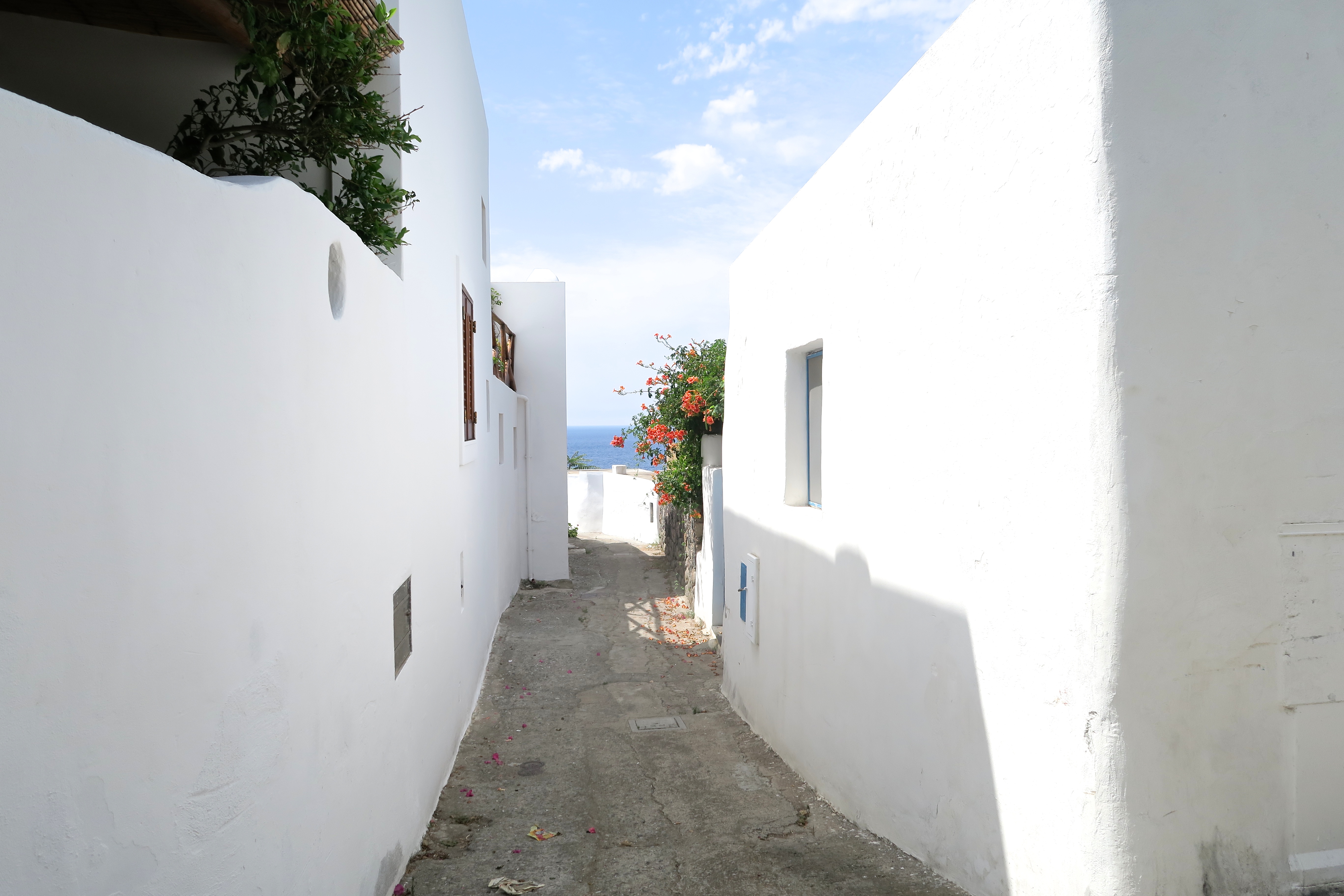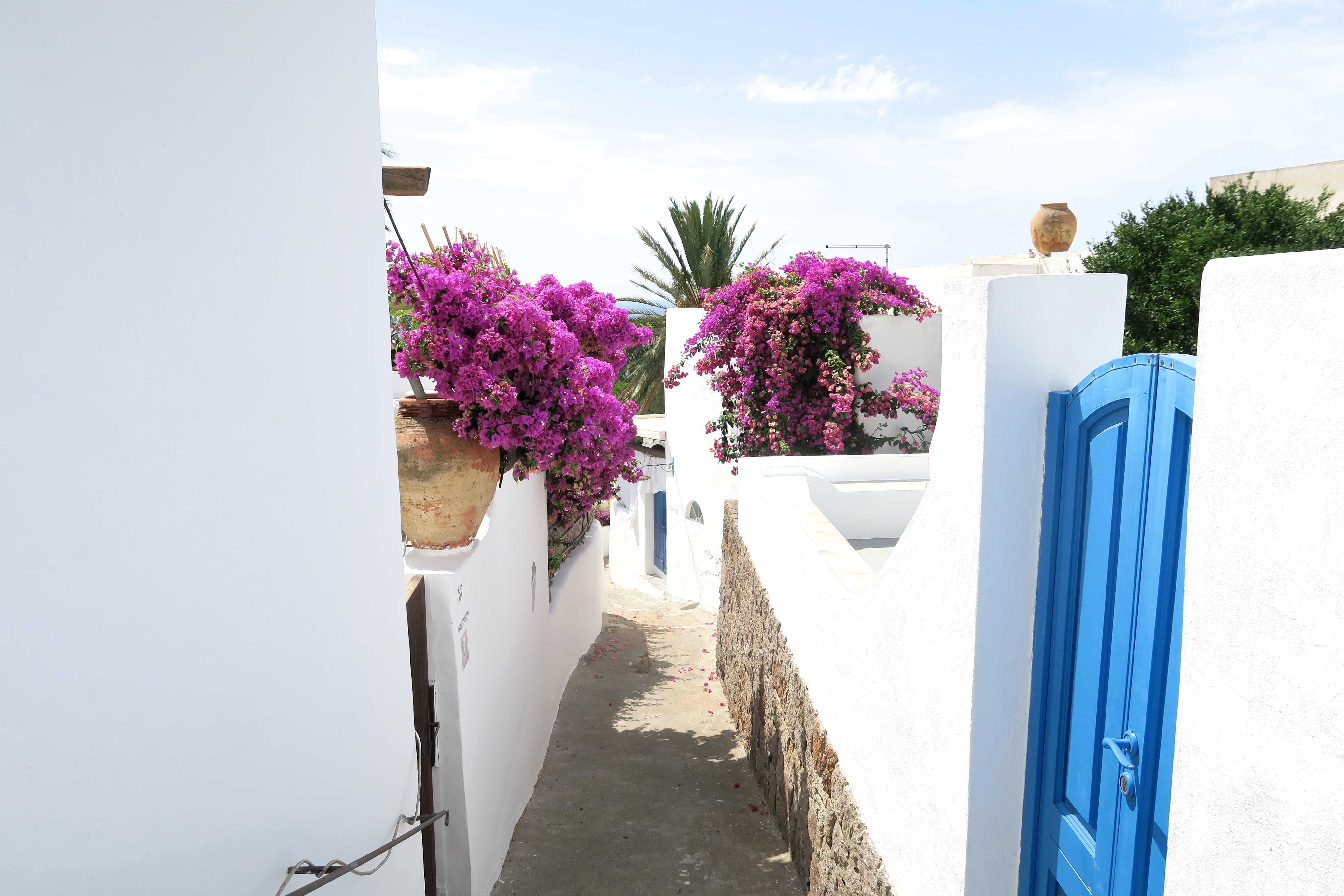 The buildings were white and with a few plants it changed the atmosphere of every little street.